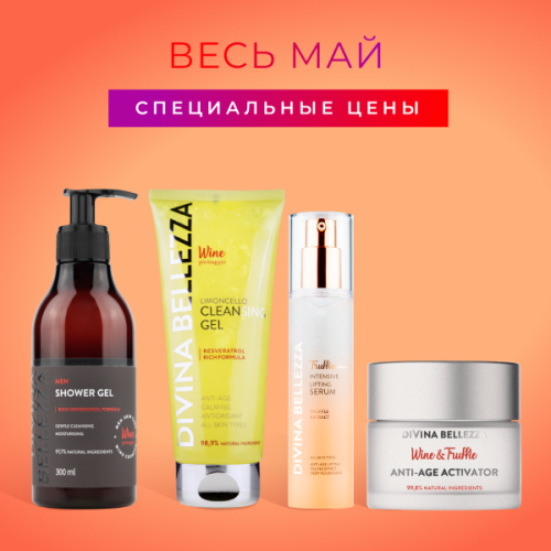 Благодаря стабильности вина Piemaggio косметологи разработали активный комплекс DiVina Bellezza, который входит в состав каждого средства.